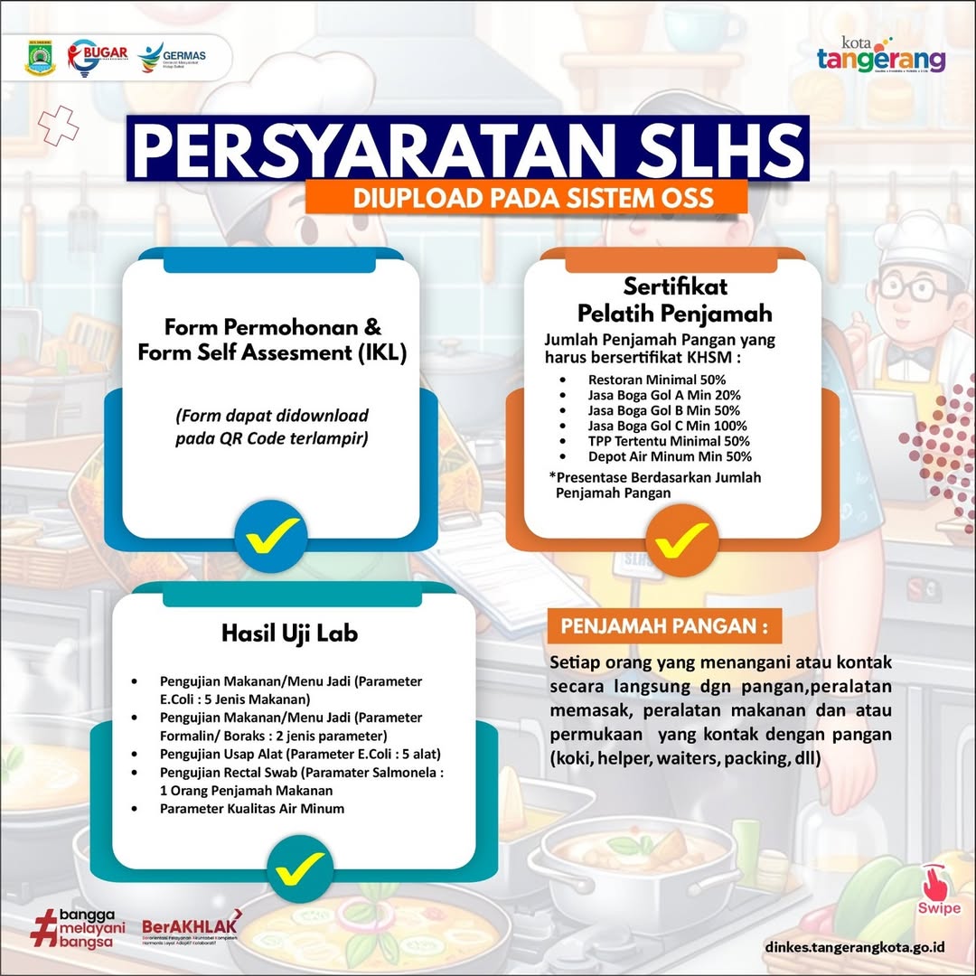 Kepala Dinas Kesehatan Kota Tangerang dr. Dini Anggraeni mengatakan pembuatan SLHS merupakan langkah penting dalam memastikan produk mereka tidak hanya lezat, tetapi aman, sehat dan memenuhi standar baku mutu dan persyaratan kesehatan.